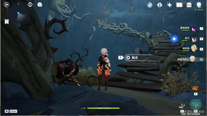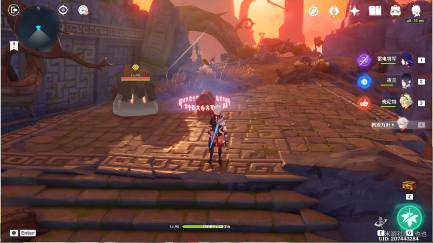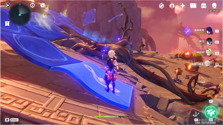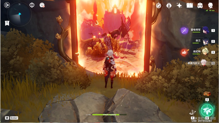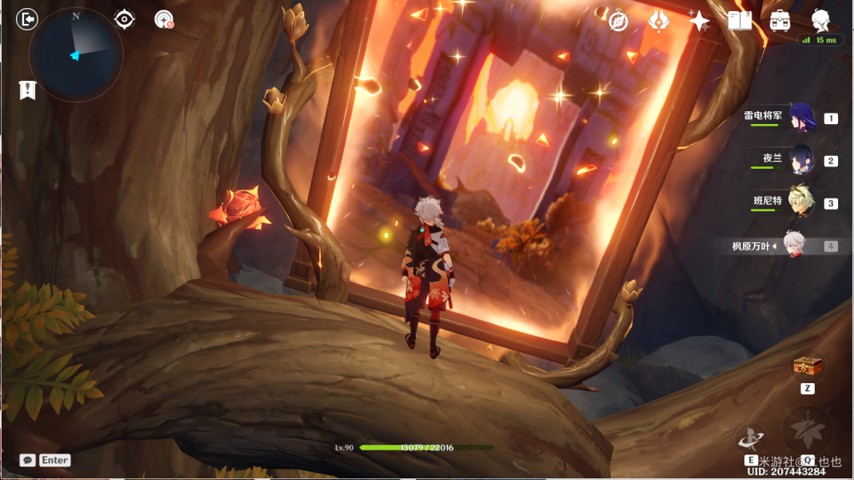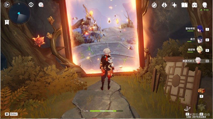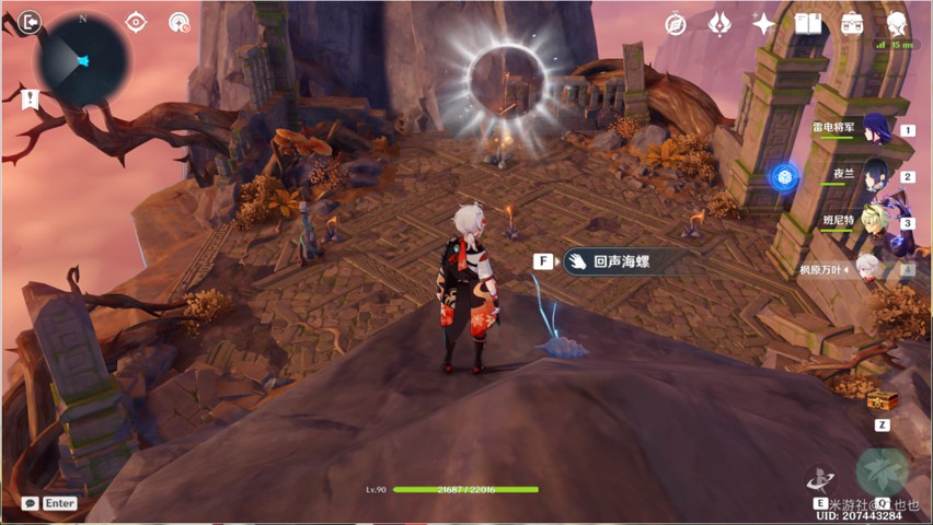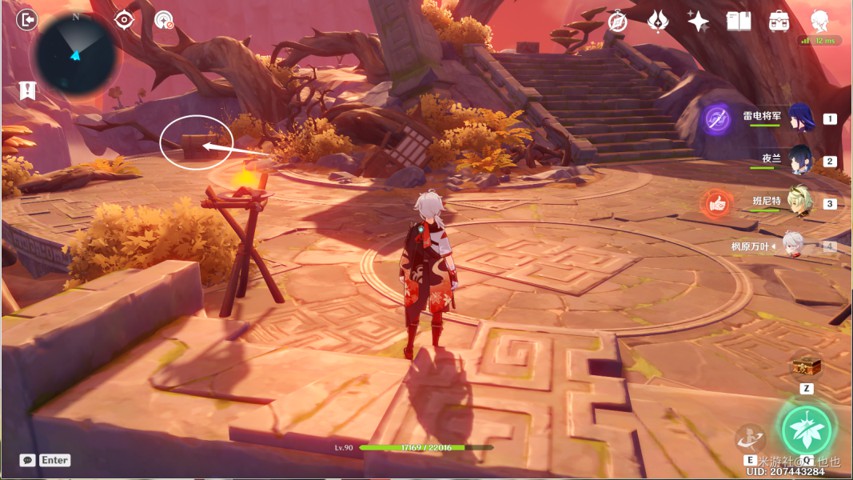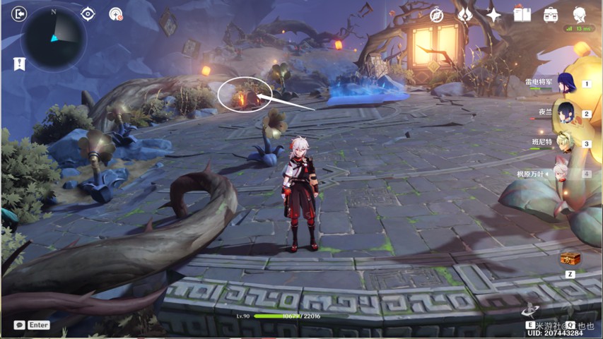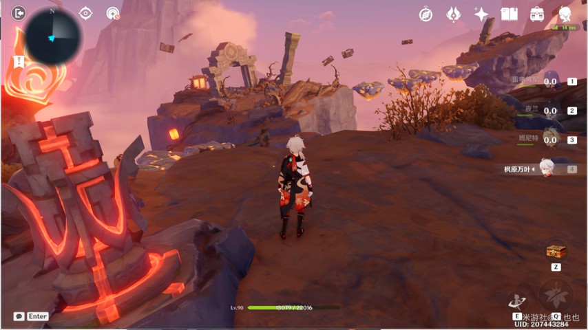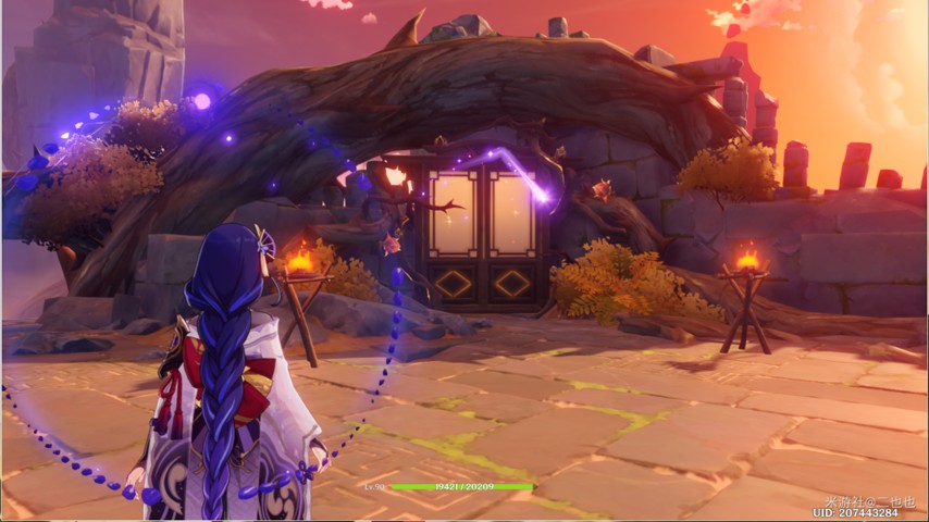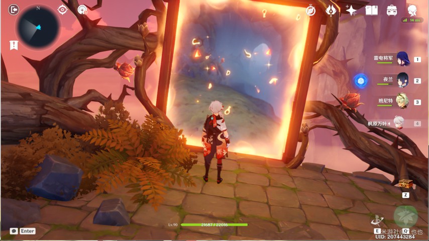 完成主线后,再进入烈火踏歌行,一般都是在冰封之心的门口这个位置,如果是查漏补缺的旅行者,这边也建议从这个位置开始,然后往右边通道,前往门扉一