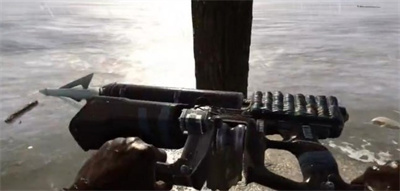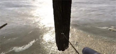 4、将绳索枪上的箭头射进木桩中,保证不会脱落,这样就弄好了一端;