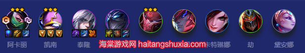 3.一般用来给三福收完米之后转,或者前期装备特别胡时玩。开局水滴攻速,卖血连败养经济,做出火炮蓝霸符,3-2开D找四刺和阿卡丽天选,当然找不到天选把阿卡丽D到二星也行,之后上7卡50D三星,给阿卡丽补无尽,凯南带鬼书。