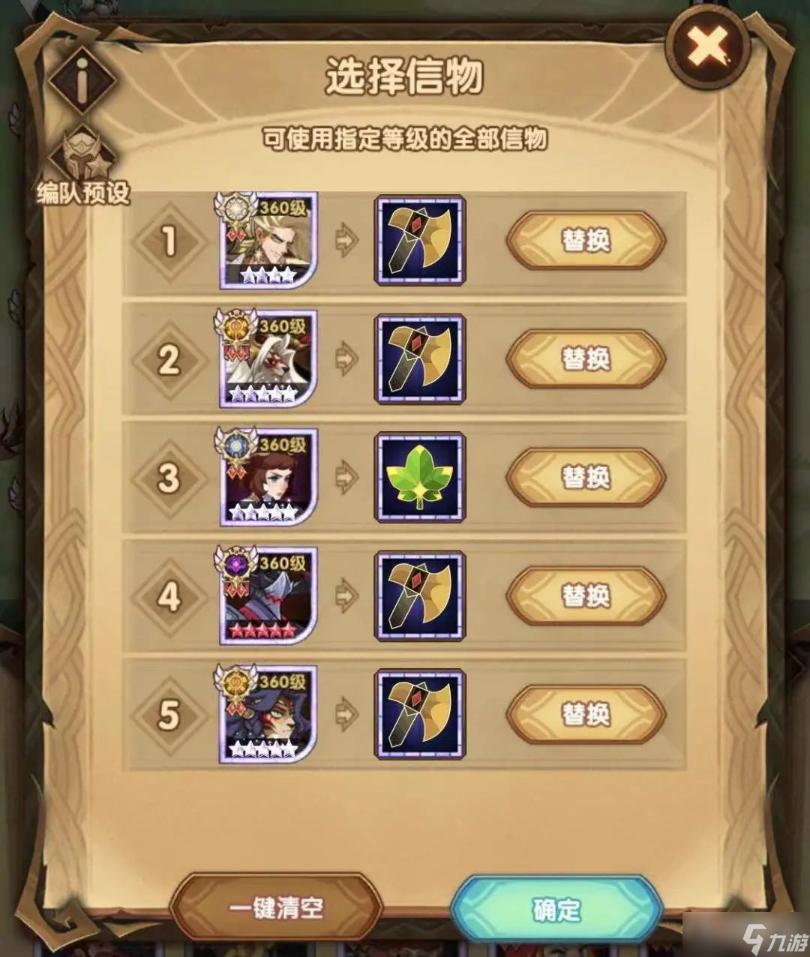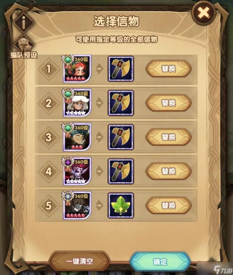 女妖、光盾、狮子、罗万和女仆,组合而成三耀光buff。这套阵容重点升级女妖,女妖的等级一定要是最高的,确保女仆一直跟在女妖身边。女妖同样也是主要输出,装备要给足,配合女仆瞬刷两次大招,伤害还是很不错的。