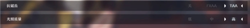 抗锯齿的话TAA比FXAA好,因为FXAA更吃显卡资源。如果两个开启后都卡,就关闭掉。光照质量开个中就行了,太高光照会增多反射面,增加显卡的计算压力。