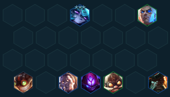 这套阵容的策略是运营速八找金克丝和维克托,2-1直接拉四,开3约德尔2极客等前期强力羁绊打前期连胜,前期过渡也可以开4海克斯,首要目标就是连胜和攒钱并不是固定思路。2-3/2-5升五人口压制,上机器人开2保镖或是根据羁绊去找其他质量卡打工保证连胜状态后期才有容错找五费C位。选秀前如果做出电刀就直接去拿锁子甲or负极斗篷做前排装备,前排的质量越高越容易连胜。