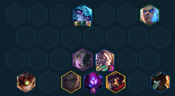 这套阵容是单前排优先保证薇古丝的坦度,版本更新中薇古丝的全期护盾被削弱了50点,中期需要装备支撑过渡到开6黑魔之后,有防御装备就塞给薇古丝不能刻意等神装。可以视战局做针对的龙牙和反甲,也可以考虑离子火花去针对敌人的龙牙!有水银可以保证薇古丝少吃很多控制(被辛德拉扔过的应该都明白水银的重要性),如果有多余的反曲弓可以考虑给薇古丝做传送门。