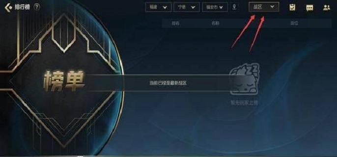 2、玩家选择排行榜页面的任意一位英雄,点击左上角的全服,切换为战区。
