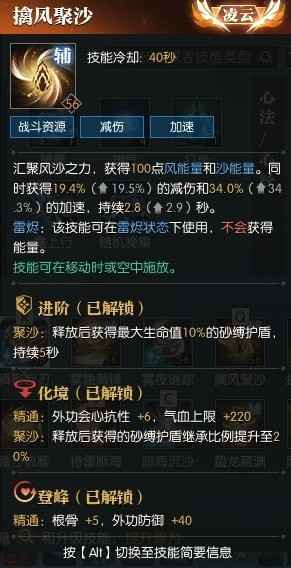 使用技能【暗海沉沙】、【猎风刃】、【荒龙噬骨】、【怒砂蚀天】、【鏖战荒天】期间可以施放【擒风聚沙】。