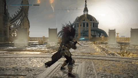 将古龙的武器——红色雷电缠绕在武器上,再将雷电化成枪,投掷而出的战技,借由蓄力发动,能提升威力。