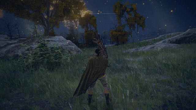 举起剑与地面平行,接着施展魔法的战技:轻攻击能将魔力化为“黑夜彗星”释放;重攻击能用火焰大范围横扫前方。
