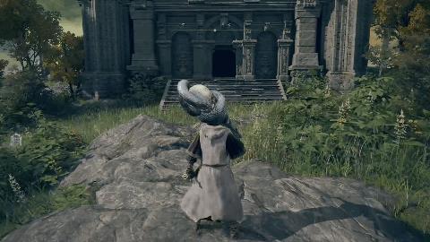 在艾尔登法环中从赐福“黄金树大教堂”的西门出发,乘坐升降梯到下边,然后沿着小路走看到巨大的长矛,爬上去就可以找到古兰桑克斯的雷电。注意要在打黑剑前捡,不然就没了。