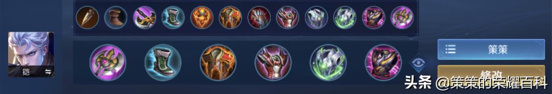 这套铭文提供16.6%攻速,使得玄策在比赛开局恰好可卡16.6%攻速档位;实际情况出装上,玄策第五与第六件装备选择面较多,可选择泣血加影刃的纯输出路线,也可选择暴烈搭配末世或影刃的高容错出装;比赛后期,攻速鞋换抵抗鞋,经济溢出再换为复活。