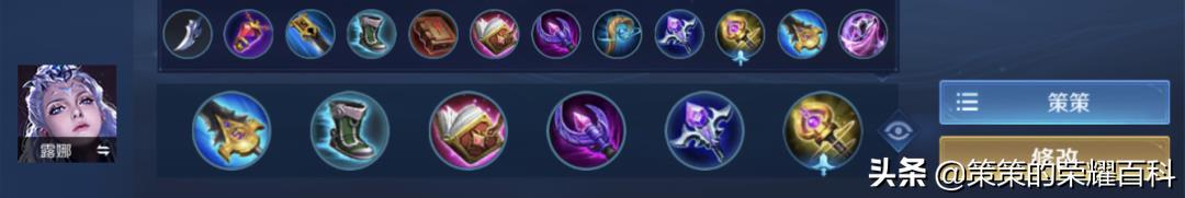 露娜在前期多以进化水晶小件过渡,这样就算丢蓝也不会太断自己节奏;出到噬神之书后,倘若敌方战刺发育较好可先补一件守护者之铠再合成时之预言;最后一件装备,根据情况选择不祥征兆、极寒风暴、魔女斗篷、破茧之衣、贤者之书与辉月;比赛后期,露娜在未选择金身辉月的情况下,可将时之预言对应替换为复活甲或名刀。