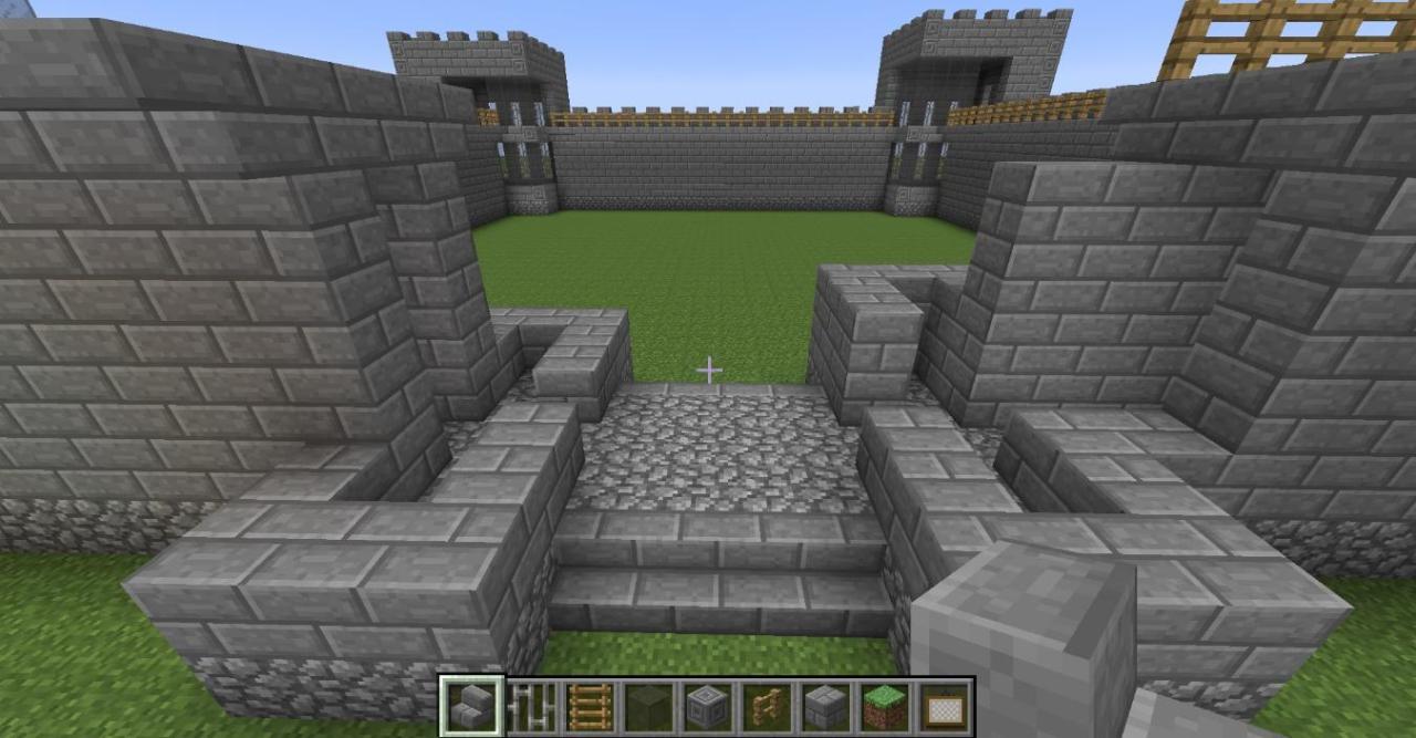 城门部分,继续用空心策略进行建造。后期我们的自动大门改造,要用到空心部分布置我们的粘