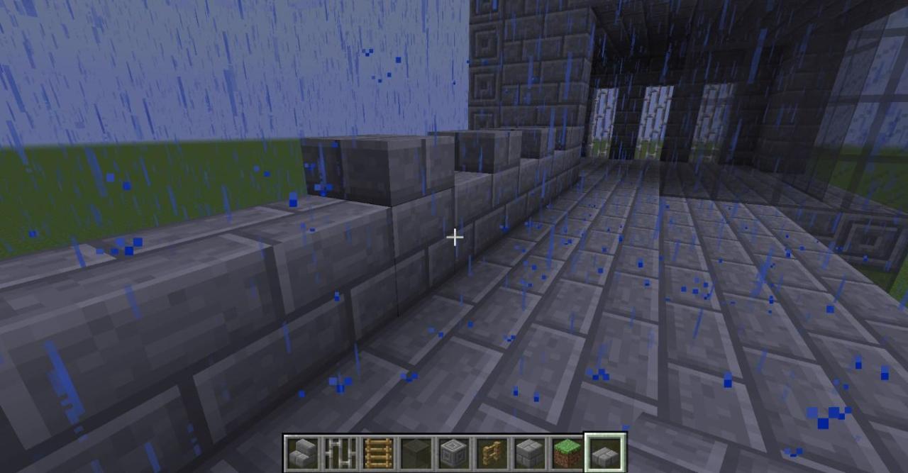 用石砖在反向楼梯方块上部垒高一层,嗯,有内味了~