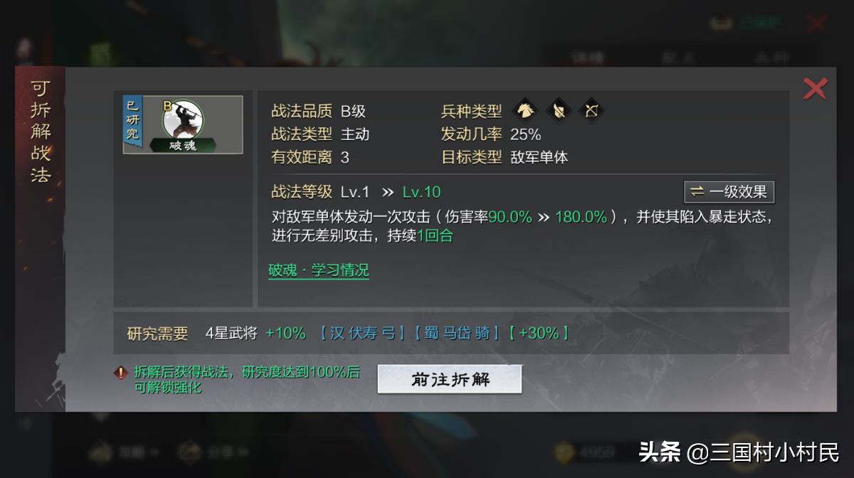 上面这些就是S1赛季值得拆解的主动战法了,其它像道行、兼弱这种技能也是值得拆的,但是由于拆解的武将获取难度太高,我这里就不列进去了。