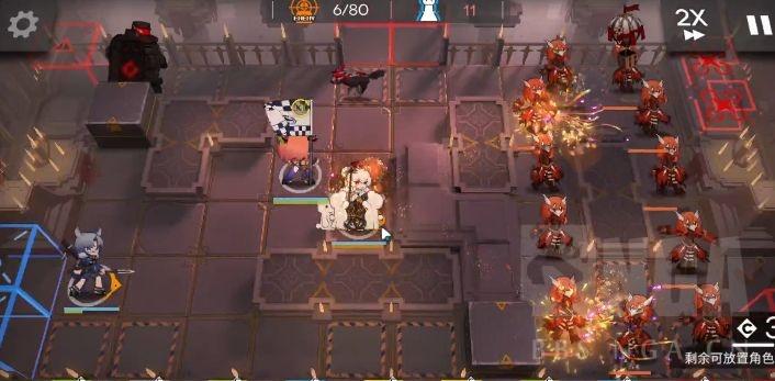 关卡难点:右边开局大量绯红歌伶转圈圈,中路高压,开局快速狼狗,BOSS群攻(物理)到主力容易团灭,左路箱子被拆大盾偷家等。