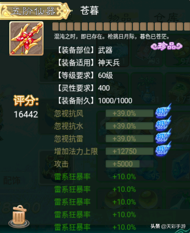 (神兵无级别规定,仙器携带受人物等级影响)