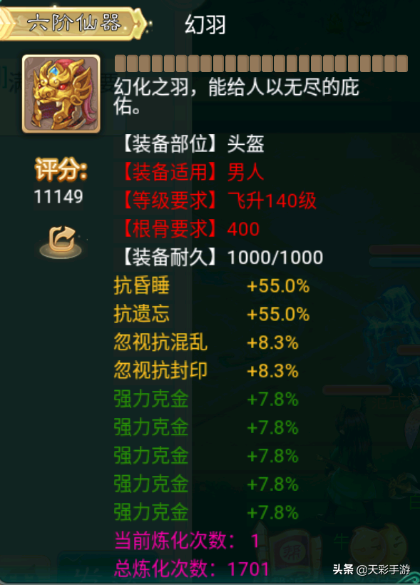 女鬼武器、翅膀、项链炼化忽视或者狂暴加鬼火和强力克,遗忘控制女鬼炼化遗忘,其他加根骨、敏捷