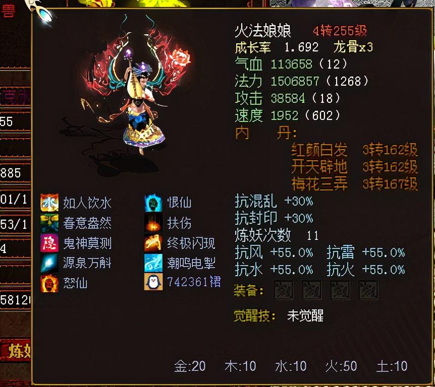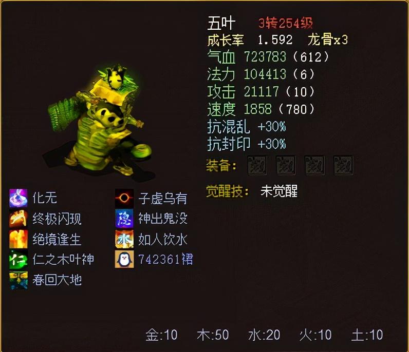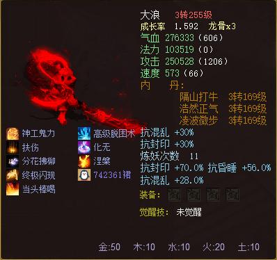 第一只浪淘沙,这个攻击力面板是其他召唤兽非常难达到的!