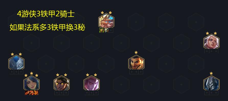 第一套铁(秘)4游侠阵容并不常见,仅在于龙族过渡时寒冰数量多,可以追三星时演变出的玩法。