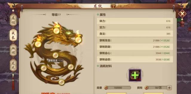 桃花门派打造方向第一个是龙纹的培养,龙纹伤害是后期站主要输出的,当开始有神秘商店的时候,龙纹就要进行累了,从神秘可以买玉开始,每天刷护宝神兽,镜湖剿匪获得的绑元就应该往这上面倾斜,全30龙元等级是基础,主龙元的等级尽可能高一点。每周神秘商城优先是血玉,接下来才是九天。何况在天龙手游国际版中,邦元在游戏中又很好获得,千万不要觉得龙纹是土豪弄得东西,只要你持之以恒投资,龙纹是会让你看到质变的东西。