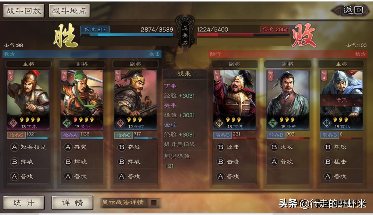 开荒武将使用武力型武将,伤害类战法,即:武力高的,不要使用智力型武将作为开荒主力。一定要有先侦查的习惯,优先使用兵种克制,其次非克制,一定不要使用被克制组合。武将等级瓶颈期,可以用1队带2队的策略,让2队武将快速升级,开荒期后体力恢复正常一次移动15点体力,拼的就是2队的铺路能力。越级挑战土地守军,最高不要超过2级,例如:武将13级打4级土地(15级守军)。