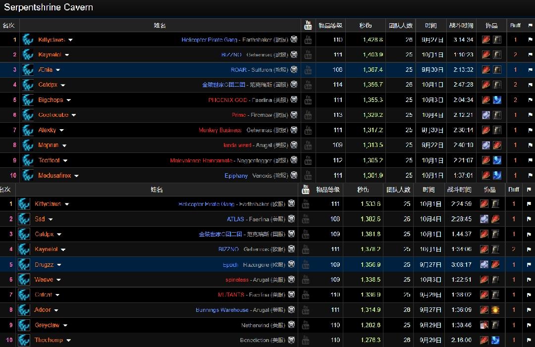 盗贼的饰品选择略有异同,除了选择龙脊奖章和嗜血胸针的大部队外,星界螺旋异军突起,在毒蛇神殿副本以及有40%的盗贼选了了星界螺旋,这件装备可以提升5%左右的DPS,仅仅比6%的龙脊奖章差一线。盗贼的平均秒伤在1400~1600之间,最顶尖的玩家才能打出这个数据,那么没有团队资源吃的普通玩家是很难破千的,这个DPS能力实际情况不够看,P5依然没有带盗贼入本的理由。