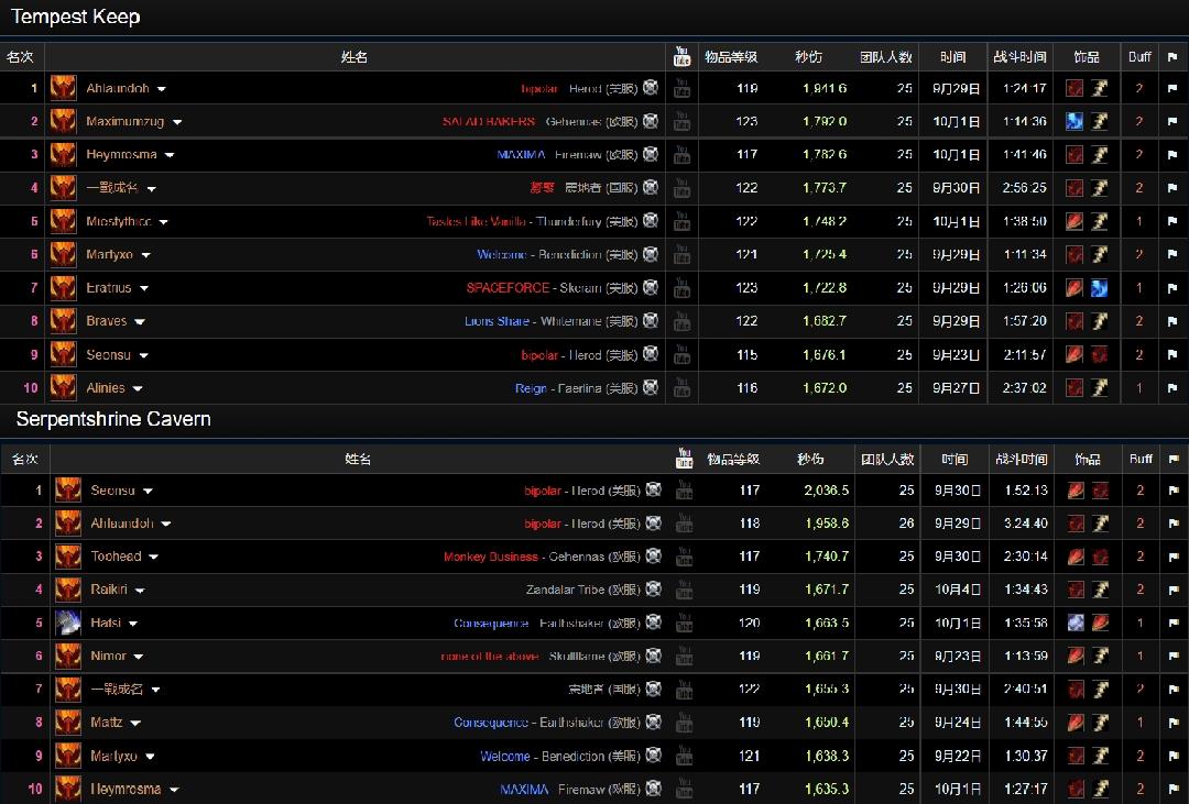 目前魔兽世界TBC怀旧服已经进行到了第三周,顶尖DPS的装备开始成型,我们可以参考顶尖玩家的装备选择来确定。