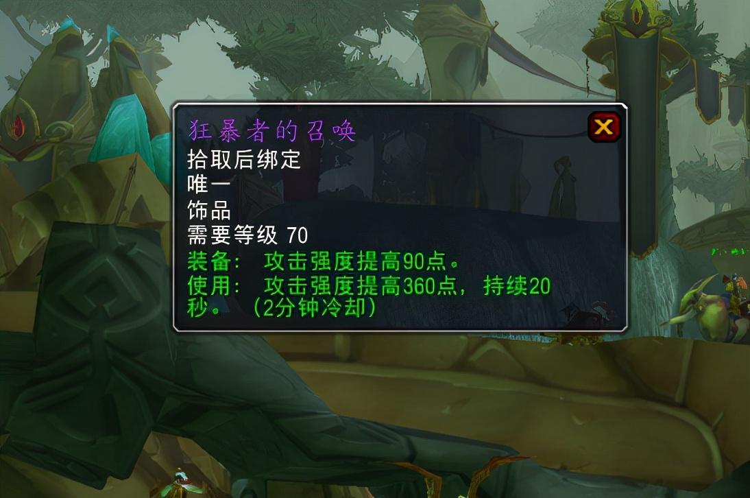 到了P4,才会一件真正的平民神器出世,10人团本祖阿曼的BOSS祖尔金掉落的狂暴战的召唤拥有恐怖的90点常驻攻强和360点爆发攻强,仅换算成平均攻强就有90+360/6=150点攻击强度,对玩家的DPS提升可以达到6%左右。事实上狂暴者的召唤还可以配合英勇和职业技能使用,实际DPS收益甚至可以达到8%,无论从哪个角度看,这件没有入手门槛的装备的价值都完爆背叛者的疯狂。