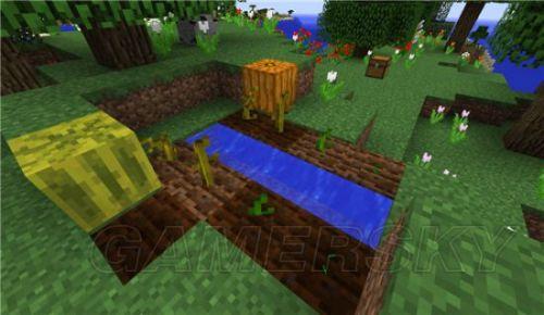 不过,在创建世界的时候,可行会生成天然的西瓜与南瓜,我们可以利用这些天然生成的瓜来为我们的作物取种。