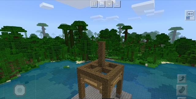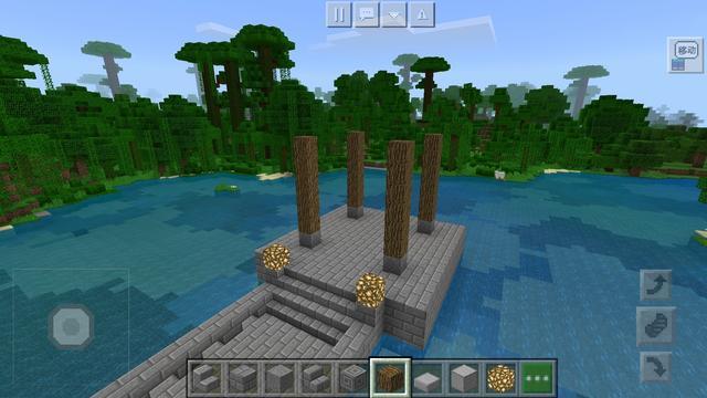 既然湖已经找到了,那么下面我们便开始做凉亭的基础部分,先用石砖在湖中心的位置建一块3×11×11体积的地基,用于后面建造凉亭使用。