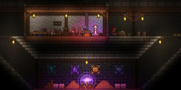 击败骷髅队长之后,地牢中的宝箱可以大大提高整体实力,将地牢探索完毕之后,整体能力就会有质的飞跃,之后向下挖掘到地狱场景,召唤前期最强BOSS肉墙。