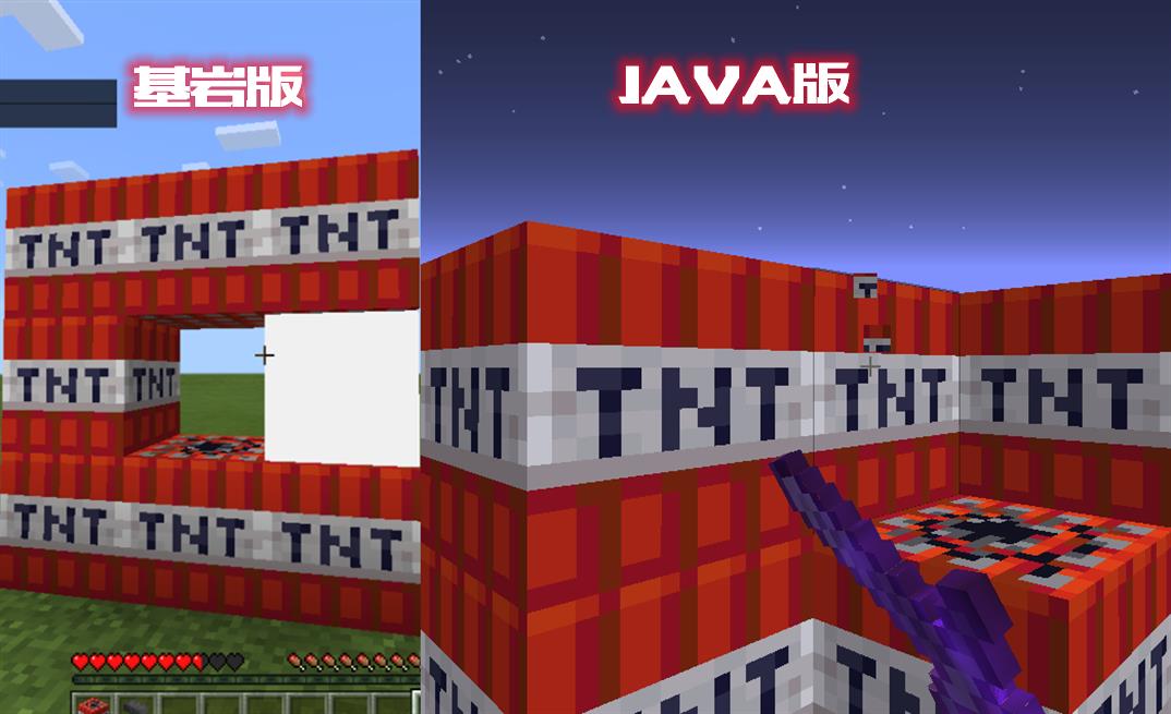 TNT引燃的关键元素是火焰,在基岩版中,附魔了火焰附加的武器是可以右键引燃TNT的,而在JAVA版中则不行。