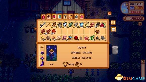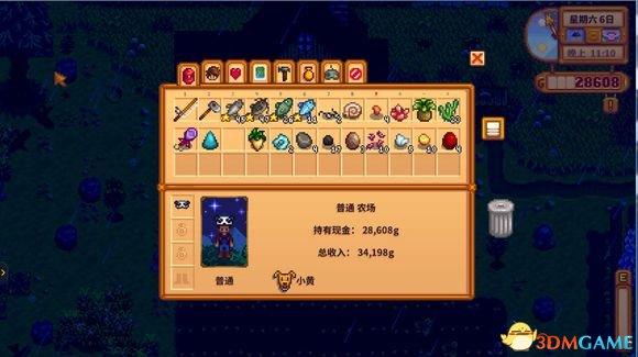 这是第六天的鱼,钓鱼9级,不想去纠结鱼王,所以还是来钓鲶鱼。收益确实没鱼王高,但基本够花了。以后发展怎么样,不是看第一年春天钓多少鱼,而是看第一年春天结束有多少中级洒水器!普通农场,一般第一年春天结束,需要有50个中级洒水器。然后以后就是轻轻松松种种田,跑跑友好度了。