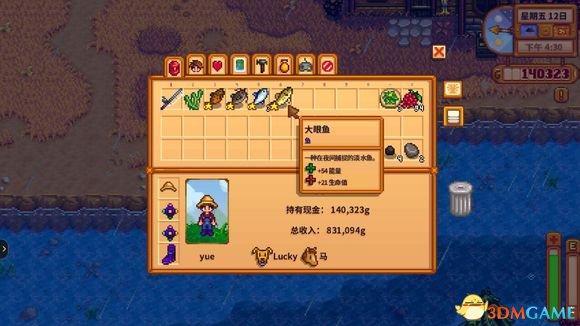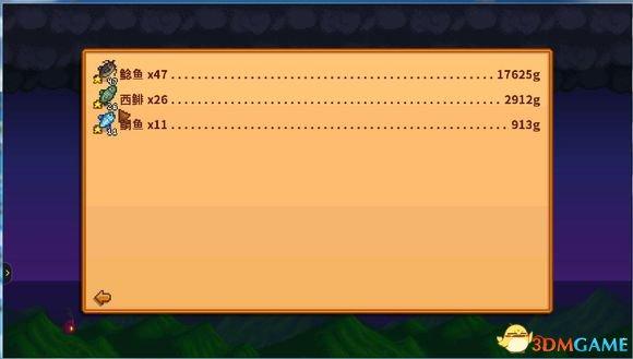 游戏第三天必定下雨,所以,前一天到家尽量把第二天的东西准备好,最好还能砍50个木头,第三天肯定要带箱子去了。第三天可是重头戏——鲶鱼。金星钓鱼一只是300金,加钓鱼技能25%,一只是375金。鲶鱼在哪钓?我建议在莉亚家下面那钓,河够宽,还经常出现涟漪。这里出4种鱼:鲶鱼,西鲱,鲢鱼,鳊鱼。鳊鱼比较便宜是下午6点以后才出现。感觉第三天是最难钓的一天,第三天钓完,钓鱼基本可以到8级了。以后再碰见鲶鱼,绿条好长,基本不怕它。如果第三天鲶鱼成功钓起来的几率能有80%以上,那就可以脱离萌新,当大师了!
