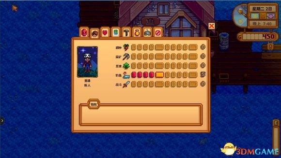 如果第二天一开始在家浇完水马上去海滩的话,基本当天晚上钓鱼等级可以到达5级。钓鱼5级可以选技能。一般都是选第一个,鱼的售价增加25%。所以下午5点以后钓到的鱼,不要在当天晚上卖,可以留到第二天早上出门的时候,丢到大箱子里。为什么是5点以后的鱼?我们来看下面一点。