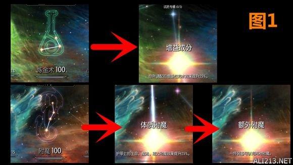 第一步:首先你要把炼金技能和附魔技能升满级(点数不必全点)如图1