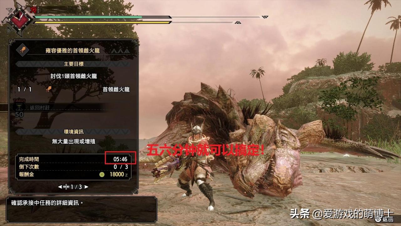 博士狩猎首领雌火龙的总时长大约是六分钟左右,有省弹珠的话,可以压缩到五分钟左右。而怪物会给予四到六颗琉璃原珠,效率还是很高的!如果你想降低风险的话,也可以去打首领青熊兽。按照上述狩猎思路,大家不断磨练技术的话,真的可以像“Tatsuffy”那样,让怪物毫无还手之力!