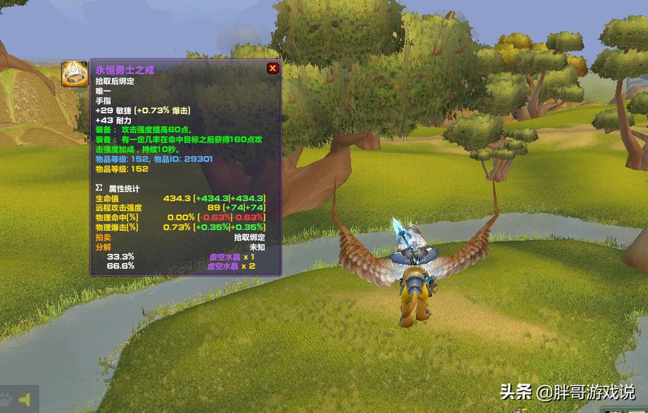29点敏捷对于猎人来说相当于29点攻强和0.75%的暴击,按照16.67%的覆盖率来计算,特效可以带来等效26.67的攻强收益,也就是说这枚戒指一共可以获得115.67的攻强和0.75%的暴击,这个收益显然已经超过伊利丹掉落的怒风徽记之戒了。