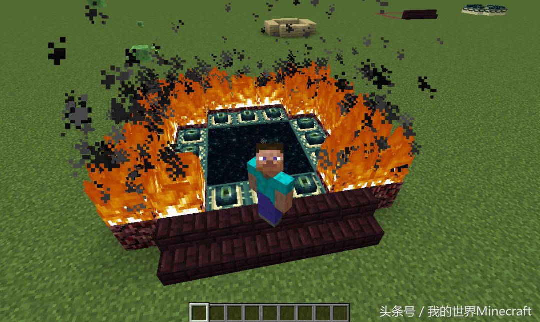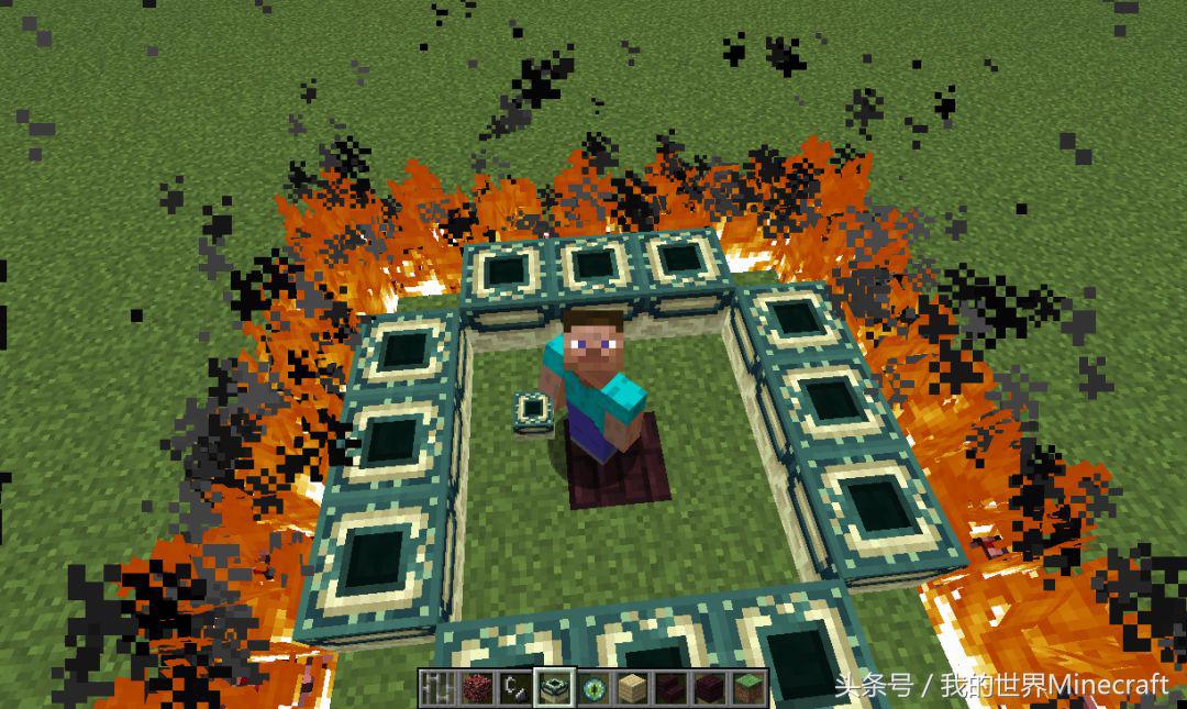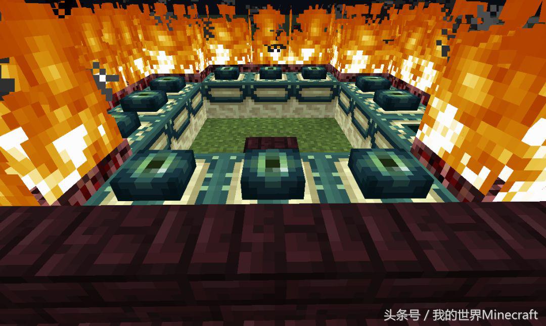 预留出传送门5X5的位置,然后把周围一圈的方块换成地狱岩,当然是为了不灭之火准备的!