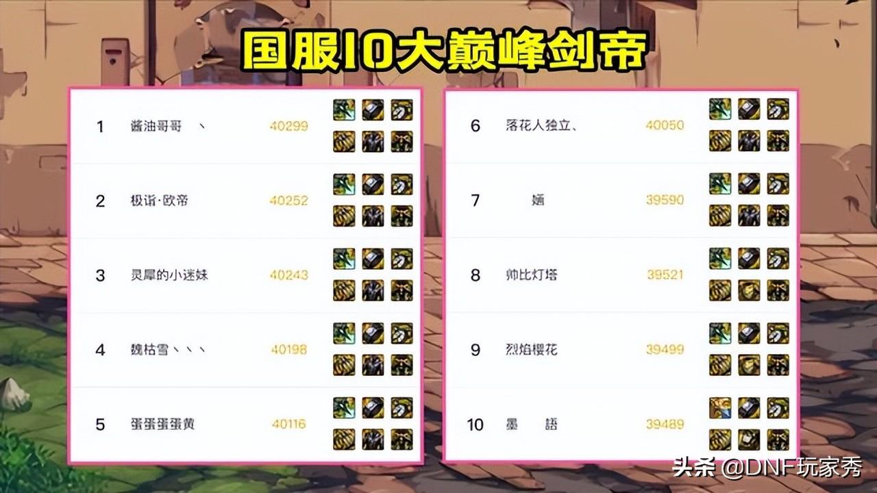 DNF110级版本,新增大量105级史诗装备,装备搭配多达上亿种,让玩家们目不暇接。不过,步骤一个月的摸索,每个职业最强出装、或者主流出装,已经被玩家们弄明白了,接下来,应粉丝们的需求,继续推出《史诗天天鉴:国服10大巅峰系列—剑帝》出装推荐,兄弟们想看自己喜欢职业的10大巅峰,可在评论区留言,秀儿会尽快更新哟。