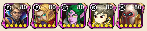 阵容解析:近战强袭队,大大姐在这个队伍中是肉盾的担当,自身的“神圣庇护”和月之骑士的“月之祝福”,足矣让大大姐在头排立住脚,然后利用堕落猎手高吸血、高命中、高攻击的属性,在敌方队伍中造成扰乱的效果,剑圣战斗开始后直接跳到敌方后排,在“不死庇护”的加持下,对其治疗和辅助职业进行致命打击,这三名近战英雄均是群体伤害,敌方的治疗压力是非常大的;控场方面卡德咖是主控,月骑是副控,场面很快就会被稳定下来,形成压倒性的战局。