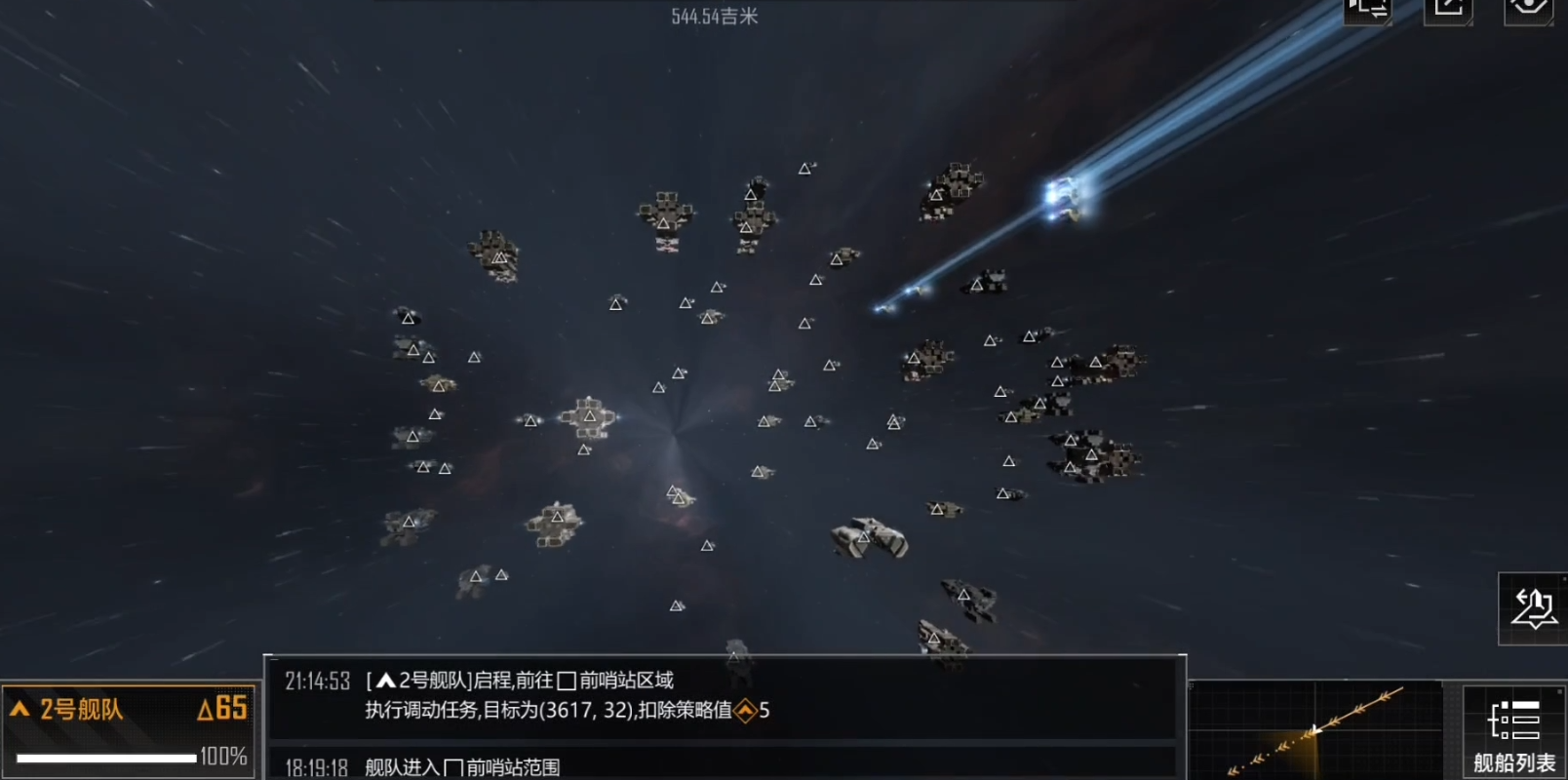 而剩下的两种情况都是计划圈之间的调动,要么是曲速航行的操作中出发点的计划圈被取消,要么是曲速操作中停泊在终点计划圈的舰队被消灭,或是被移出了计划圈,只要注意以上四种情况,我们的曲速航行就不会丢失了。
