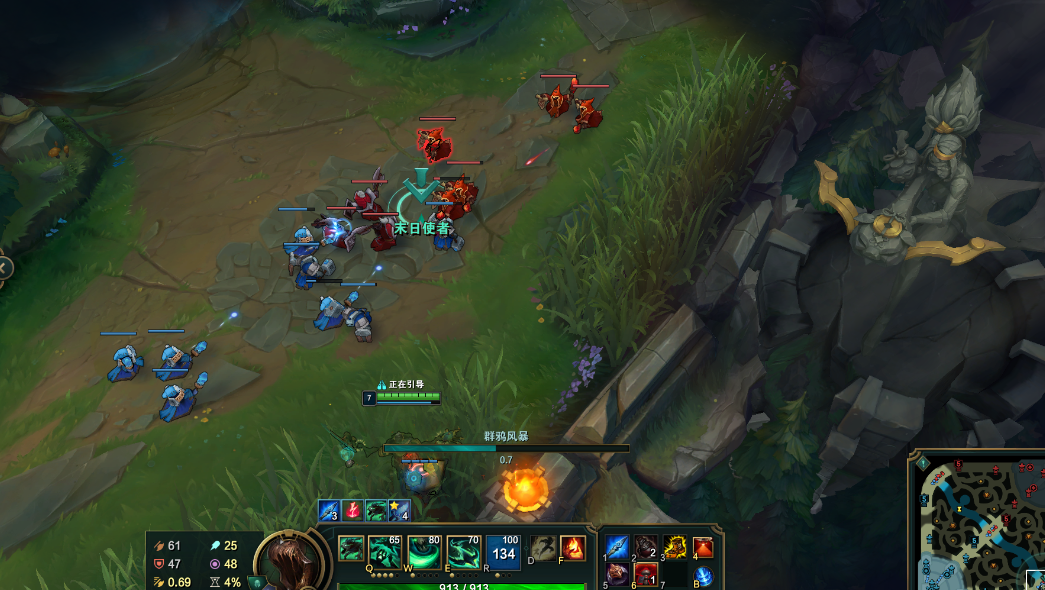 末日到了六级之后如果线上没有机会的话就可以考虑去游走支援,因为末日小规模团战也是非常的厉害,尽量大招起手,不然QEW丢完之后末日会陷入非常尴尬的真空期,这时候再选择大招一般来不及了。