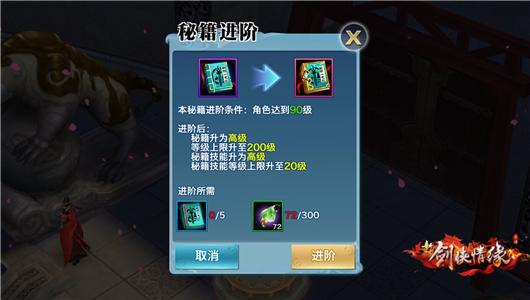 进阶到高级秘籍的需要满足秘籍等级已经升至150级且秘籍技能的等级达到15级。