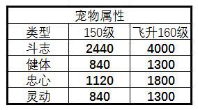 3.飞升160级18星宠物对排名中游的玩家属性提升