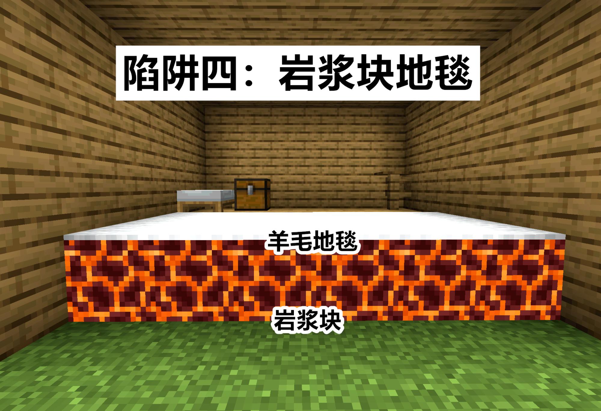 99%的玩家都会在《我的世界》使用的陷阱,但问题这虽然只是“羊毛地毯+岩浆块”的组合,但致死率却出奇的高!往往中招者在不知发生什么事情的情况下,就悲惨的死回了重生点。