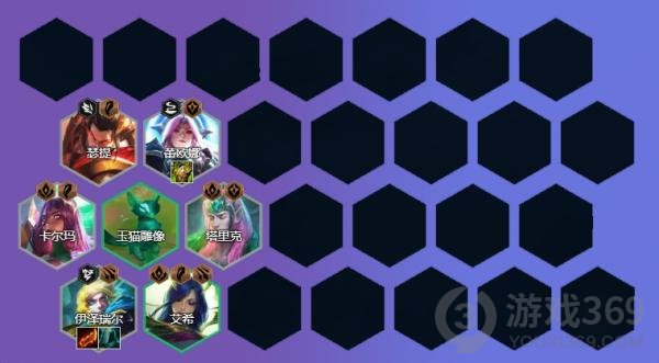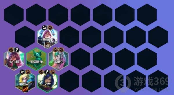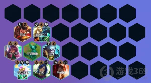 棋子搭配:卡尔玛、艾希、斯维因、艾尼维亚、沃利贝尔、李青、奥恩、亚索