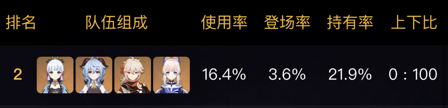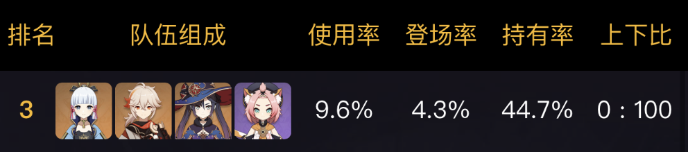 “神鹤万心”作为神里绫华最有代表性的永冻队和顶级永冻队之一,在深渊几个版本中都有着出色的表现,可以说永冻队天花板上。在最佳版3.5深渊,神鹤万心打出了第一下半水使徒与第二下半水使徒空壳,表现非常出色,这让神鹤万心团队荣登使用率榜首。