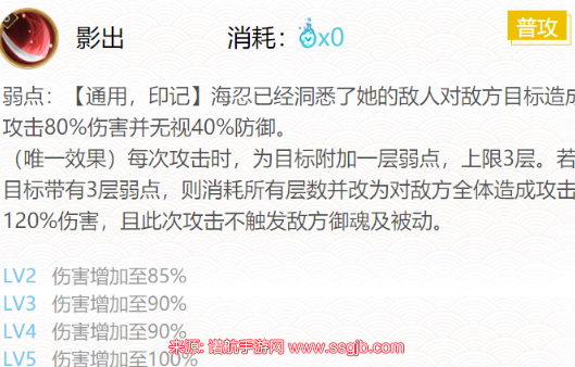 从她的基础属性来看在SR级式神中她的能力完全达标,她的普通攻击伤害很高,而且有一定的爆击几率。在普通攻击能力方面,她毫不逊色于其他众多的式神。