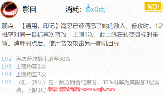 海忍的技能方面核心在于她的被动技能,一旦被动技能满级她的能力将变得非常强大,如果你善于步骤你可以利用这个式神实现无限连击,并且还可以对敌人造成范围伤害,如果发挥到极致海忍的普通攻击就足以将对方整个团队消灭。